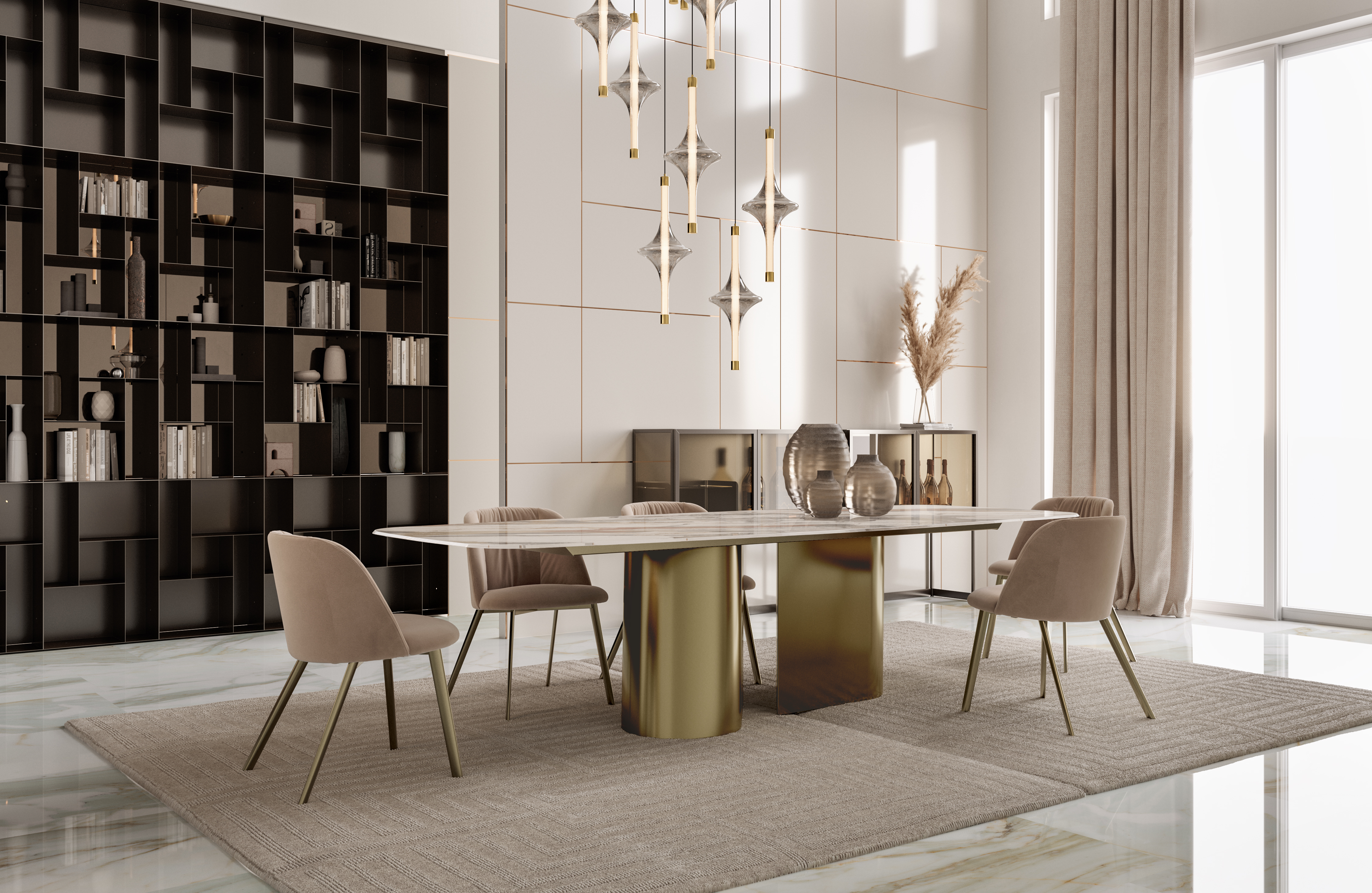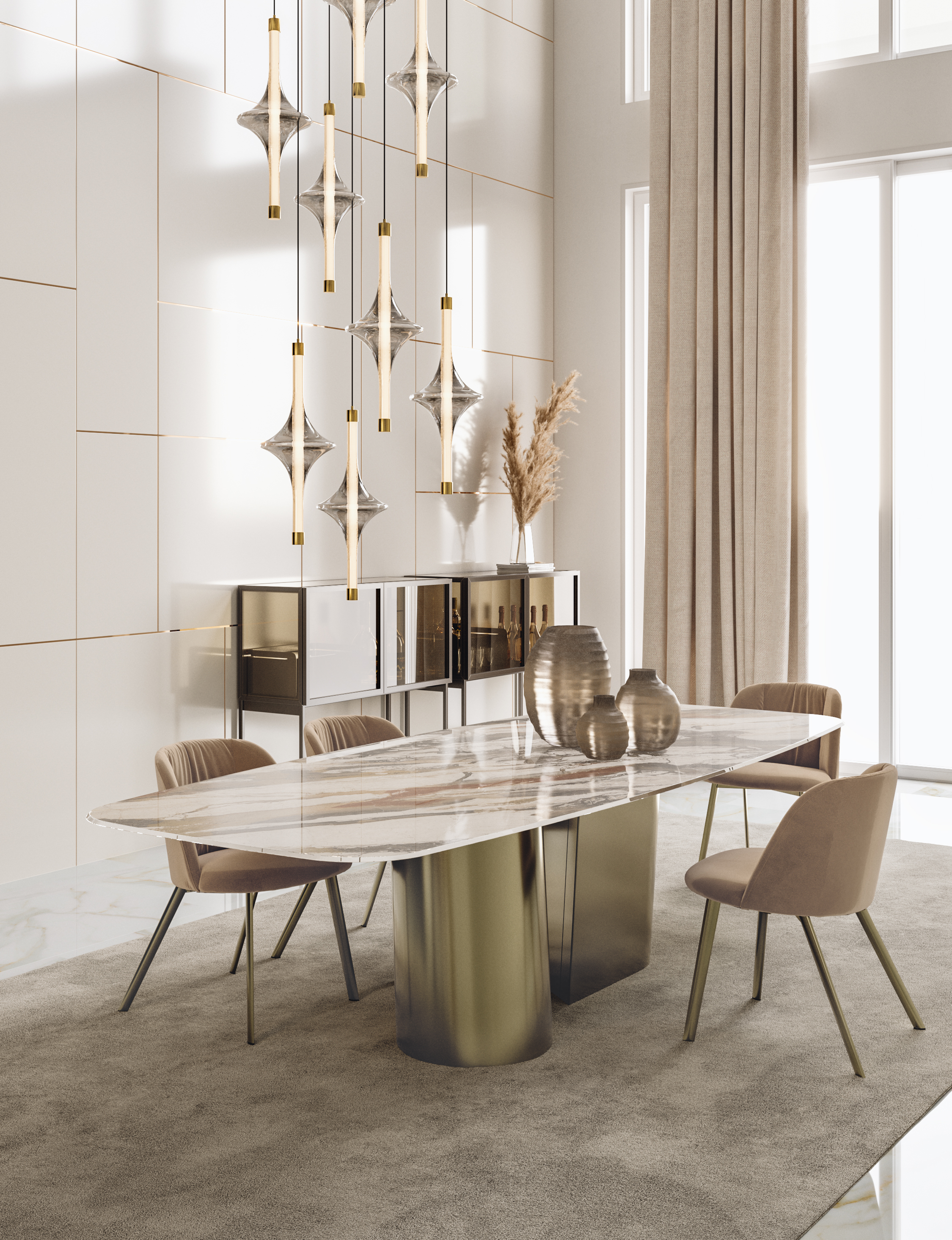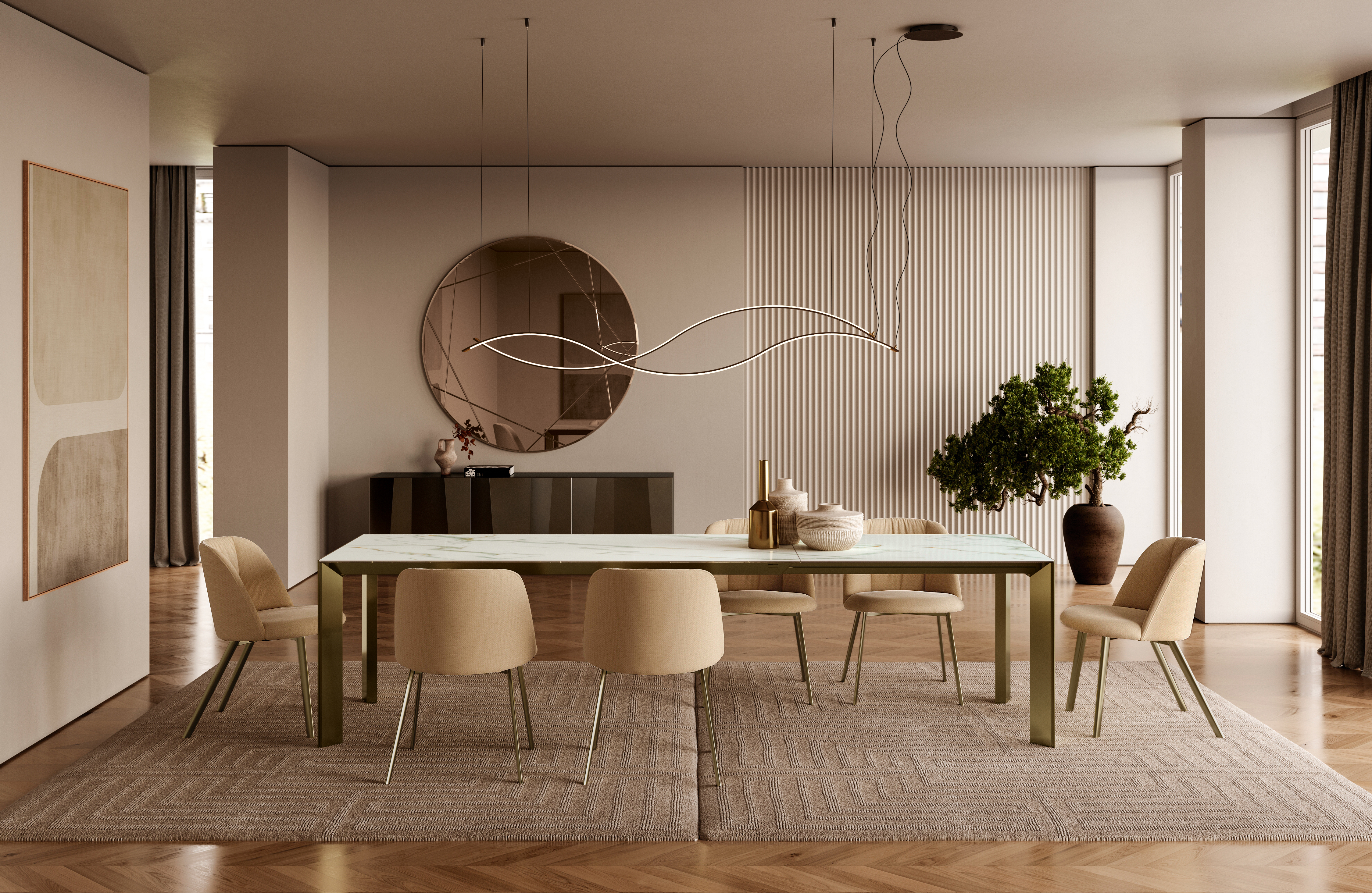 Krzesło AGATHA - eleganckie krzesło tapicerowane, wykonane z dbałością o każdy detal; podstawa drewniana lub metalowa; dostępny szeroki wachlarz tkanin i skór obiciowych.