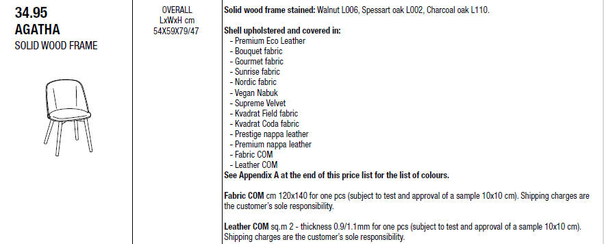 Klientów zainteresowanych wyceną modelu AGATHA prosimy o przesłanie na nasz adres email (twoje@luxmeble.eu) wybrane opcje krzesła;