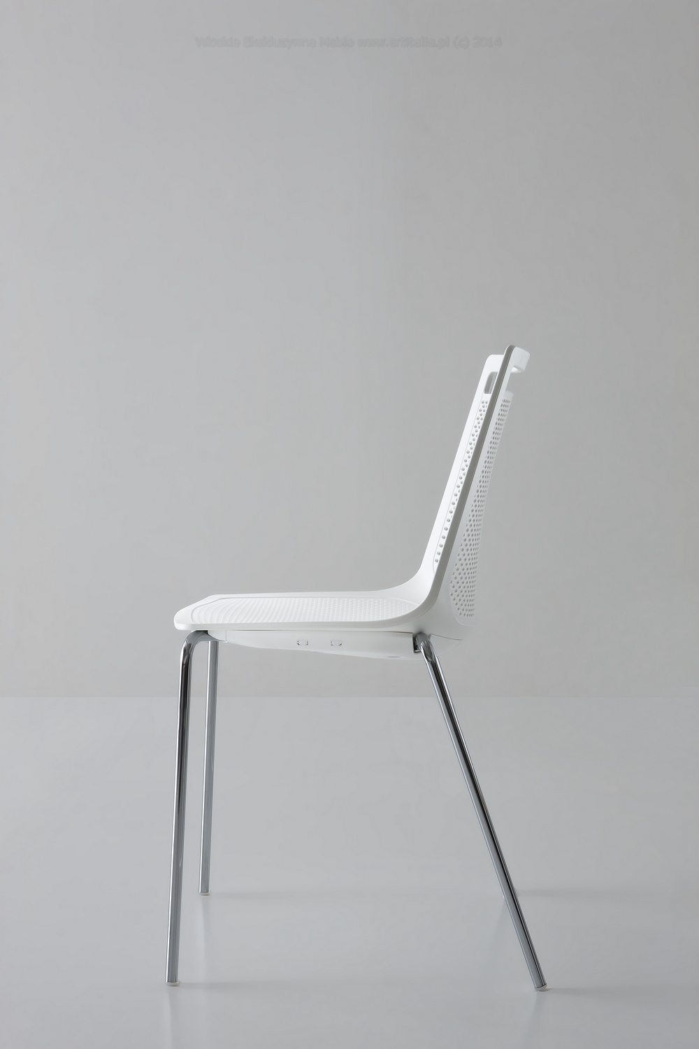 Krzesło AKAMI; siedzisko z technopolymeru, podstawa w dwóch wersjach: chromowana do użytku tylko w pomieszczeniach i lakierowana na kolor biały przeznaczona zarówno do wnętrz jak i na zewnątrz. Produkt posiada atest CATAS. Dokładne wymiary na zdjęciu w galerii. Krzesło przeznaczone do użytku zarówno do wnętrz jak i na zewnątrz (TYLKO PODSTAWA BIAŁA) pomieszczeń. Krzesło można sztaplować.