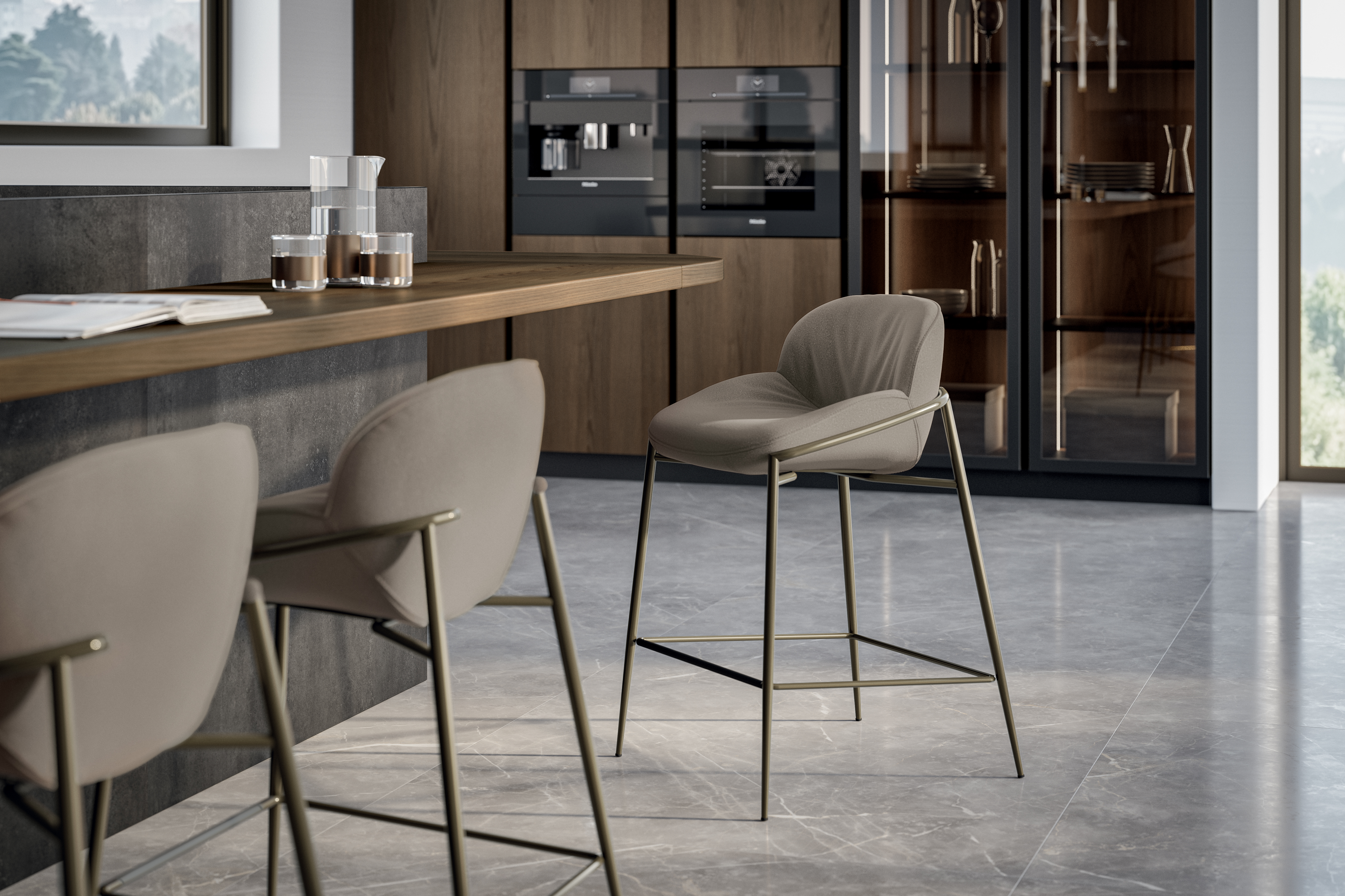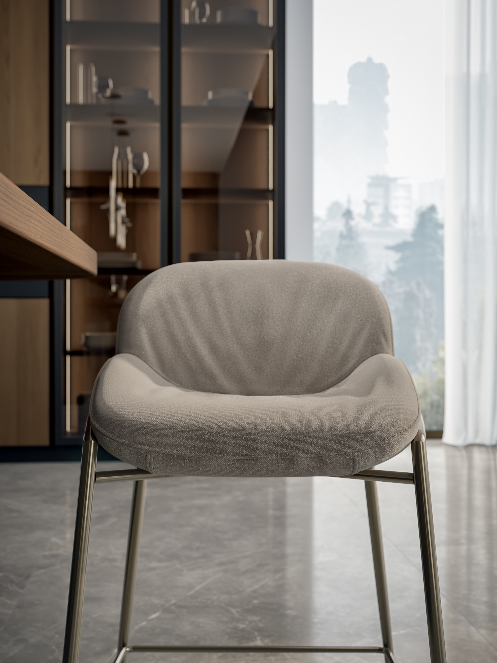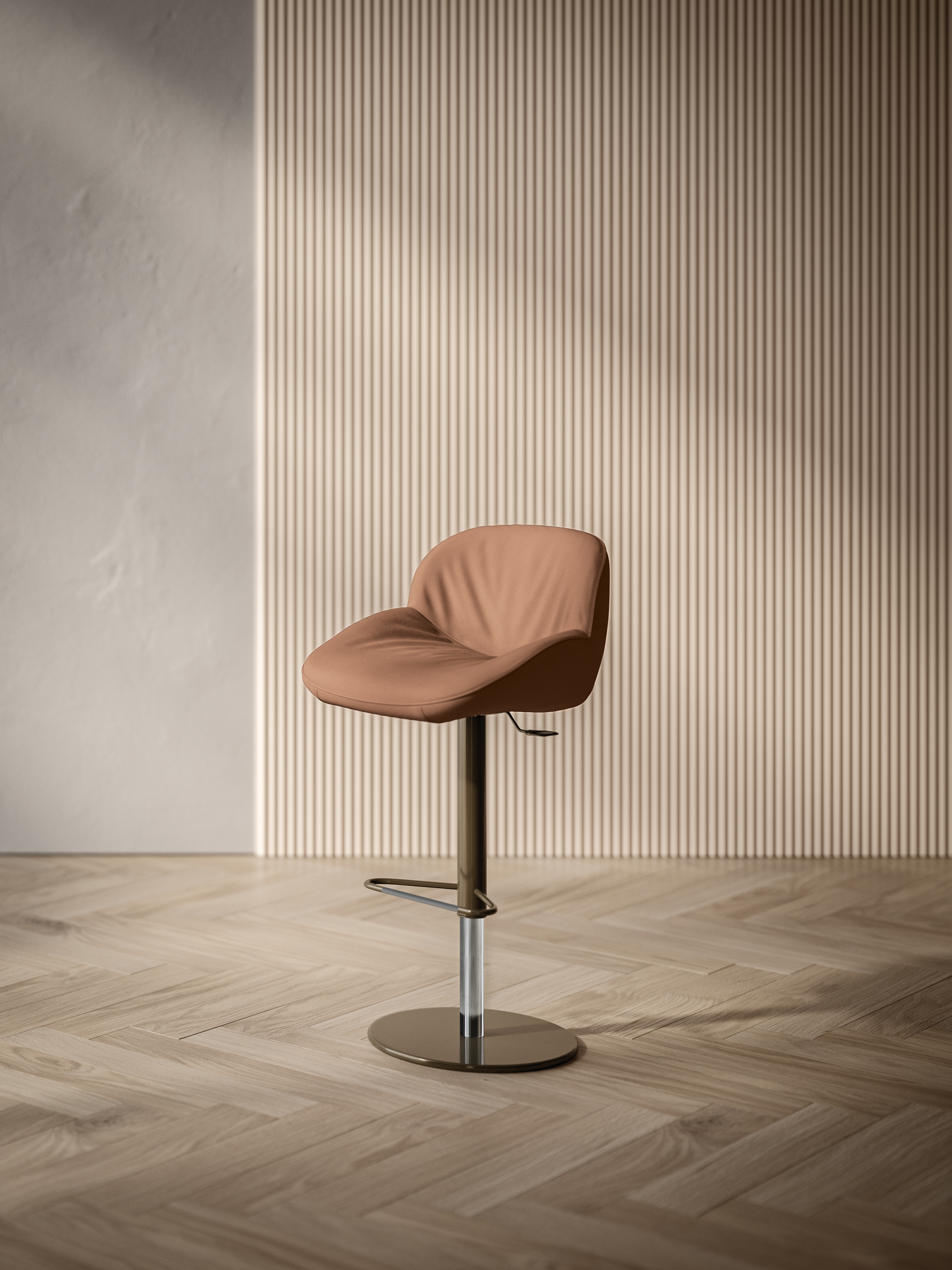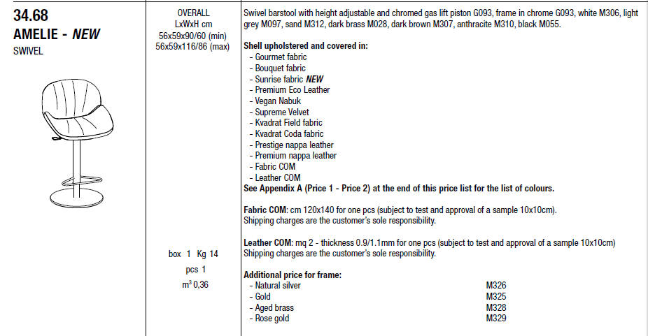 Hoker AMELIE - elegancki hoker tapicerowany, wykonany z dbałością o każdy detal; podstawa metalowa lub metalowa z regulacją wysokości; dostępny szeroki wachlarz tkanin i skór obiciowych.