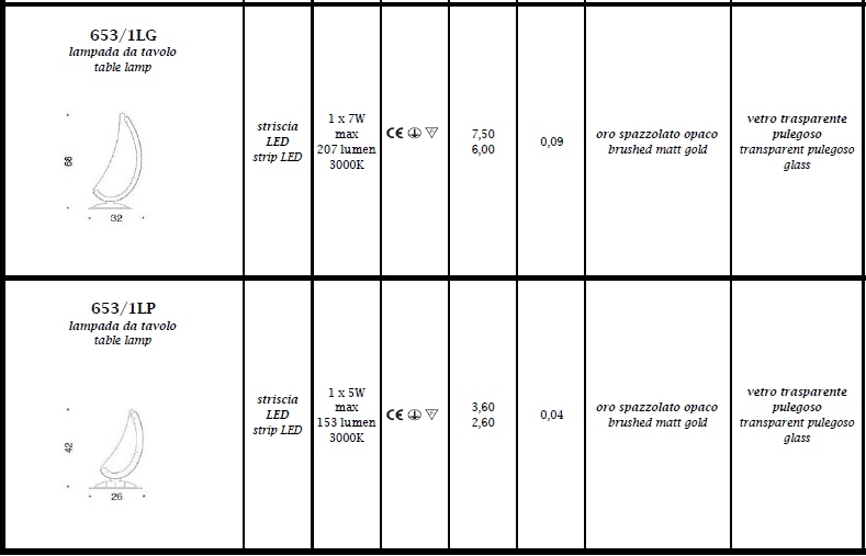 Lampa stołowa ANGEL 653/1LG, 653/1LP - stojąca, dekoracyjna lampa; efektowna i niepowtarzalna; specyfikacja produktu poniżej; oryginalny produkt włoski.