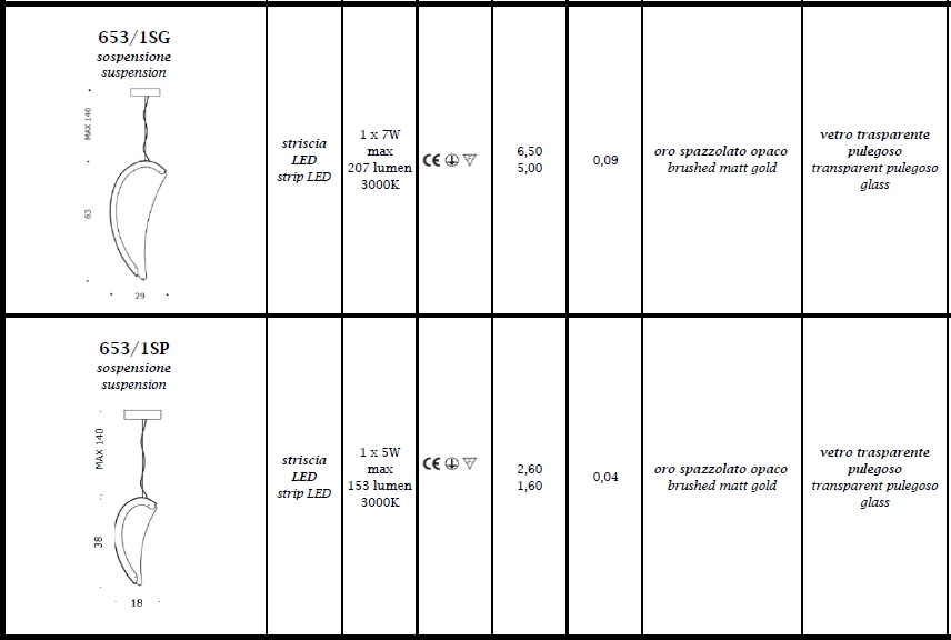 Lampa wisząca ANGEL 653/1SG, 653/1SP - wisząca, dekoracyjna lampa; efektowna i niepowtarzalna; specyfikacja produktu poniżej; oryginalny produkt włoski.