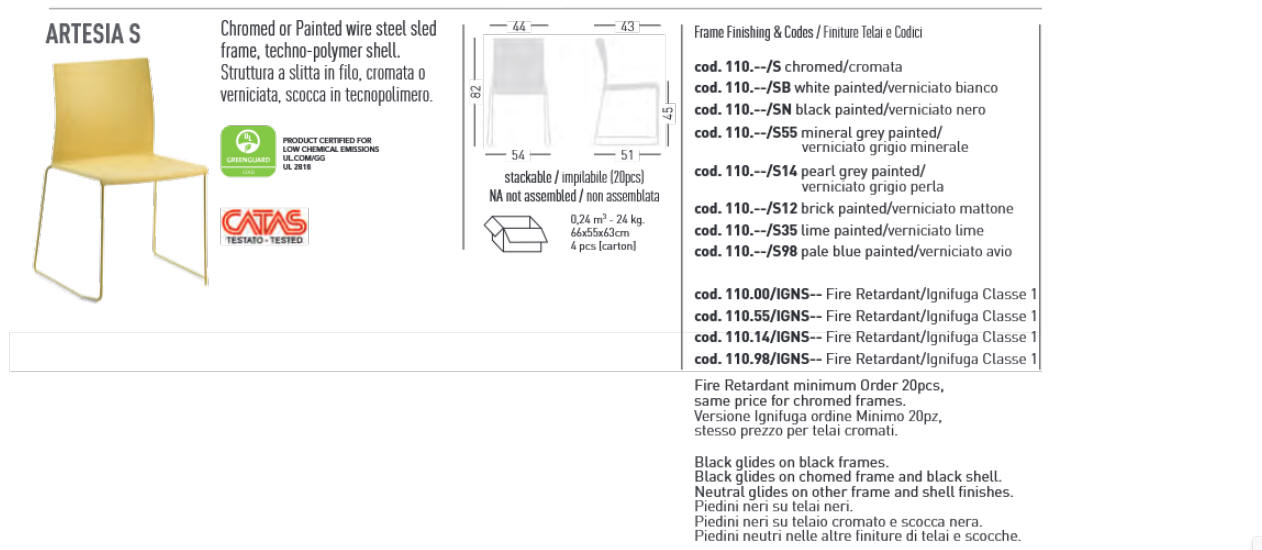 Krzesło ARTESIA połączenie podstawy, wykonanej z metalu lakierowanego w kilku kolorach z siedziskiem z technopolymeru kolorystycznie kompatybilnej z podstawą. Dokładne wymiary na zdjęciu w galerii. Krzesło przeznaczone do użytku we wnętrzach; doskonałe do restauracji, sali konferencyjnej czy wykładowej. Krzesło dostępne w kilku wariantach. Krzesła można wyposażyć w łączniki pozwalające na układanie w rzędy. Dostępne są również wózki transportowe.