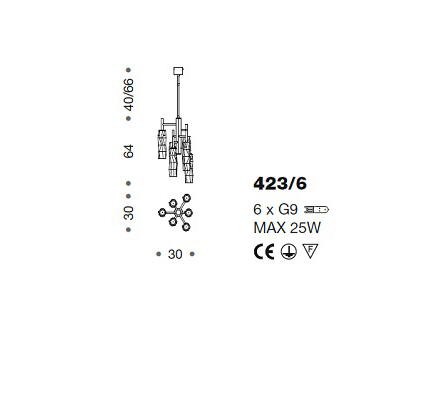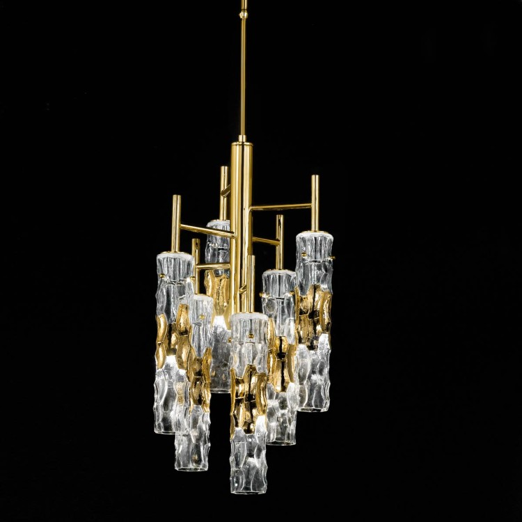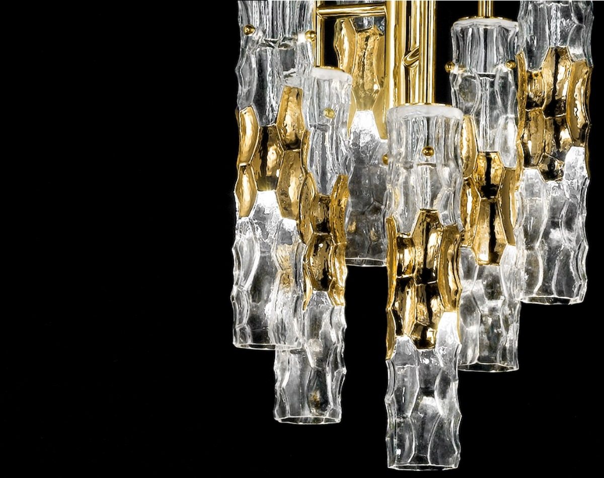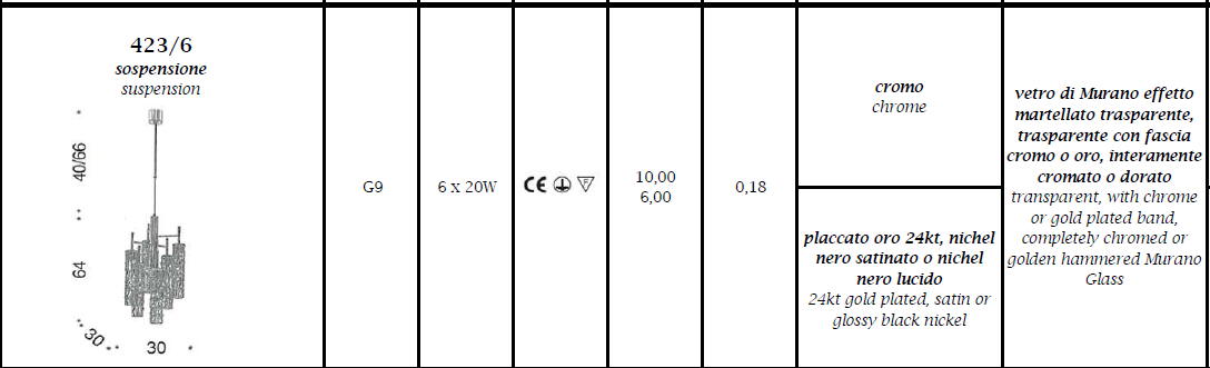 Lampa wisząca BAMBOO 423/6 - elegancka, stylizowana lampa doskonała zarówno do nowoczesnych jak i klasycznych wnętrz; konstrukcja metalowa dostępna w czterech kolorach, klosze ze szkła Murano z efektem młotkowania dostępne w czterech wariantach kolorystycznych; specyfikacja produktu poniżej; oryginalny produkt włoski.