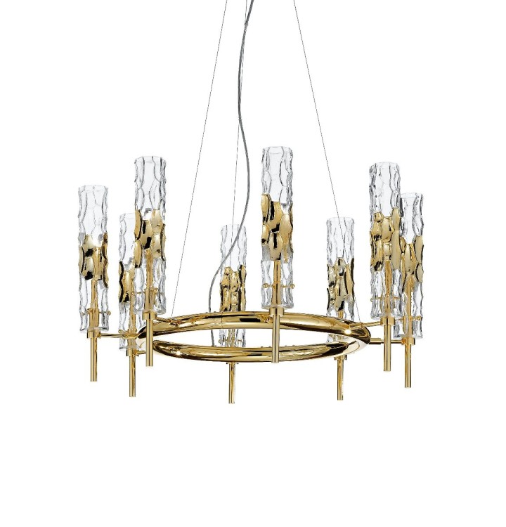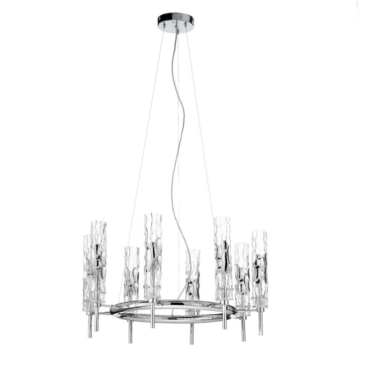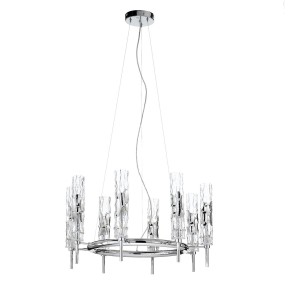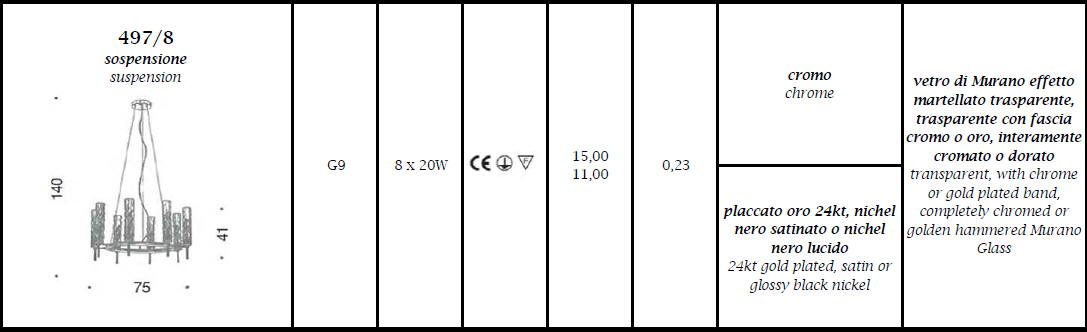 Lampa wisząca, żyrandol BAMBOO 497/8 - elegancka, stylizowana lampa doskonała zarówno do nowoczesnych jak i klasycznych wnętrz; konstrukcja metalowa dostępna w czterech kolorach, klosze ze szkła Murano z efektem młotkowania dostępne w czterech wariantach kolorystycznych; specyfikacja produktu poniżej; oryginalny produkt włoski.