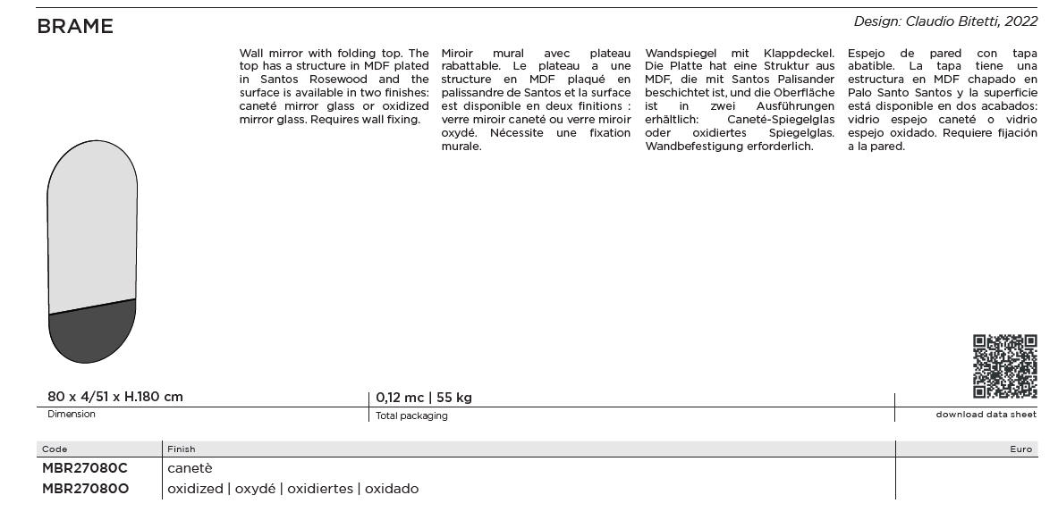 Lustro BRAME - 2 rozmiary - 2 kolory - oryginał MOGG Italy