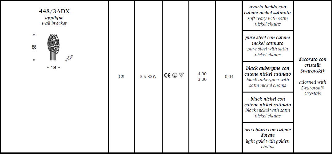 Kinkiet CHRYSALIS 448/3ADX - dekoracyjna lampa; efektowna i niepowtarzalna dostępna w kilku wariantach kolorystycznych; specyfikacja produktu poniżej; oryginalny produkt włoski.