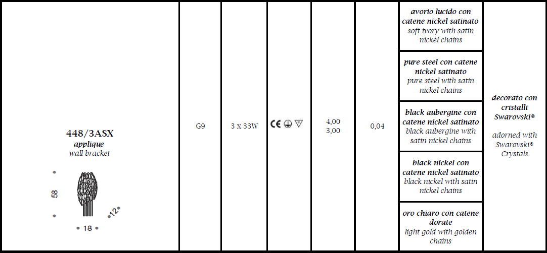 Kinkiet CHRYSALIS 448/3ASX - dekoracyjna lampa; efektowna i niepowtarzalna dostępna w kilku wariantach kolorystycznych; specyfikacja produktu poniżej; oryginalny produkt włoski.