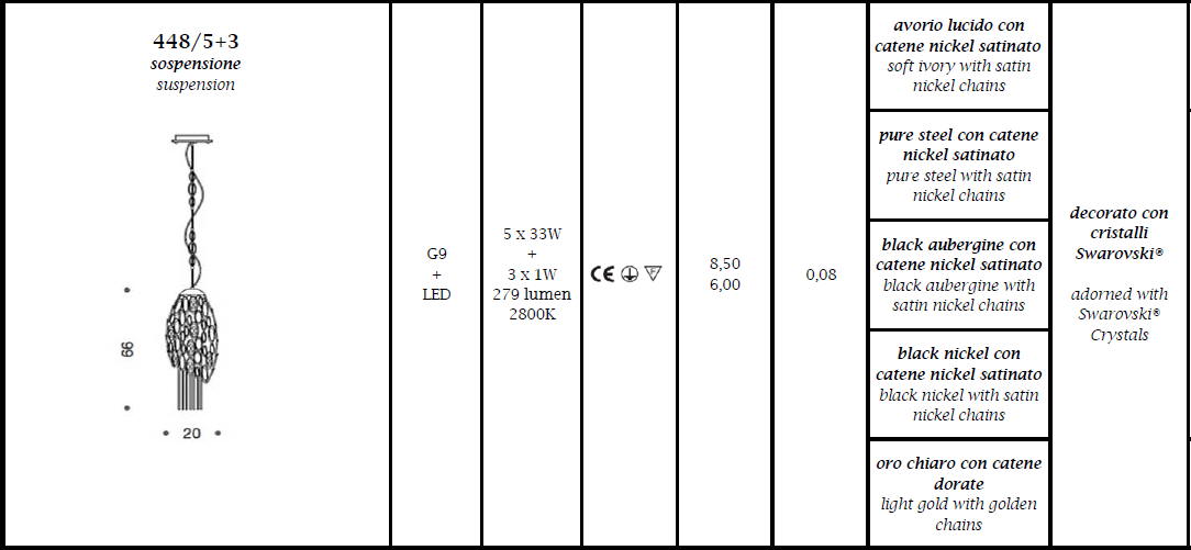 Lampa wisząca CHRYSALIS 448/5+3 - dekoracyjna lampa; efektowna i niepowtarzalna dostępna w kilku wariantach kolorystycznych; specyfikacja produktu poniżej; oryginalny produkt włoski.