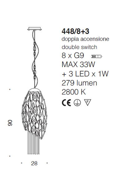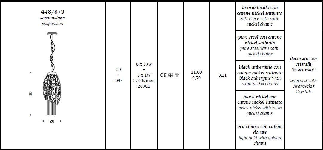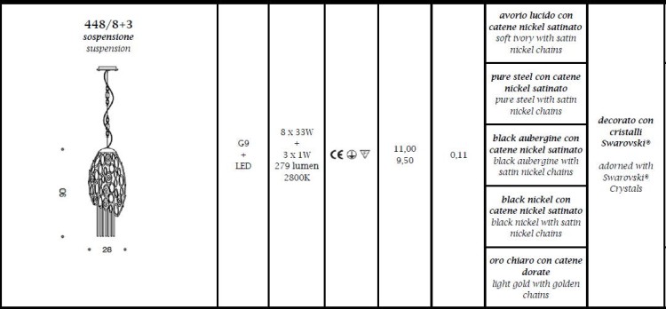 Lampa wisząca CHRYSALIS 448/8+3 - dekoracyjna lampa; efektowna i niepowtarzalna dostępna w kilku wariantach kolorystycznych; specyfikacja produktu poniżej; oryginalny produkt włoski.