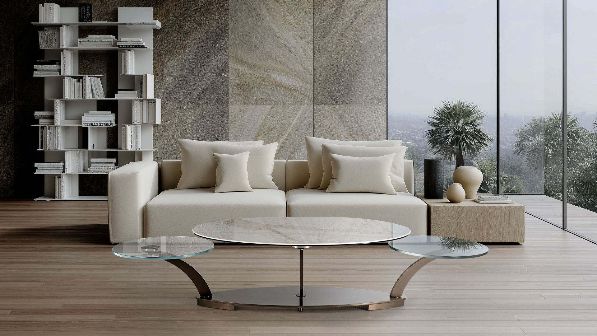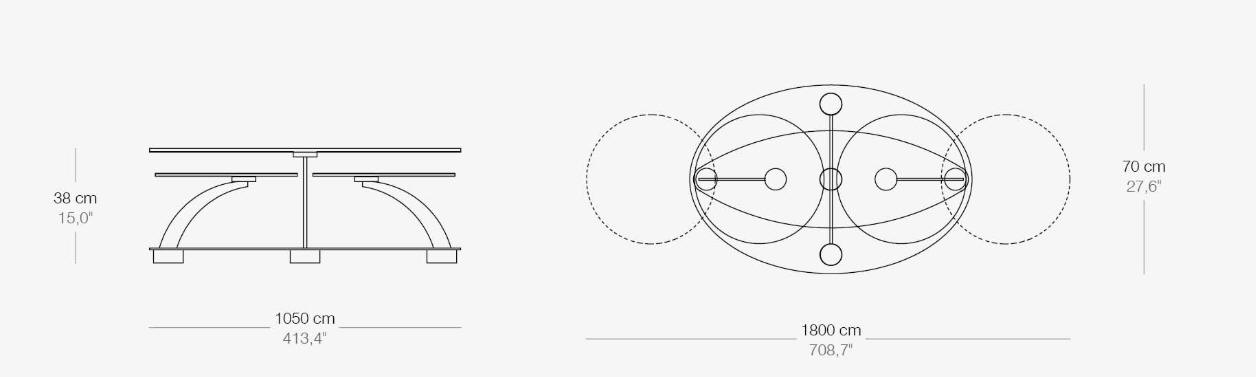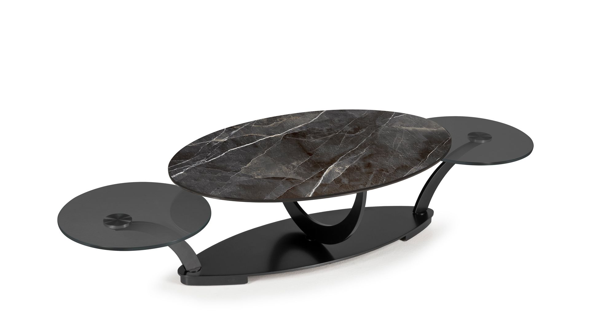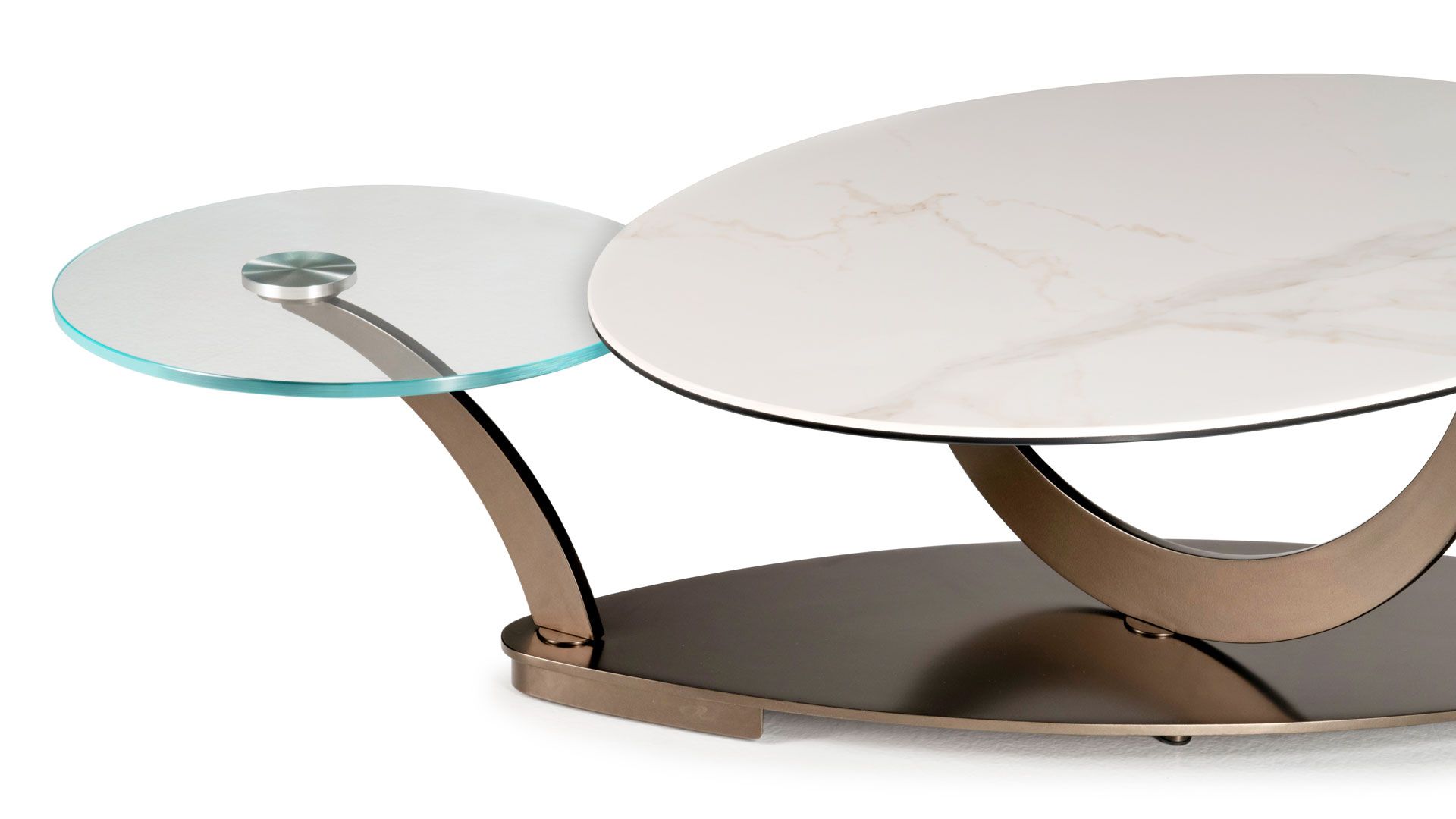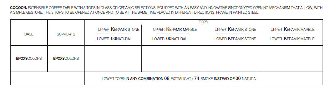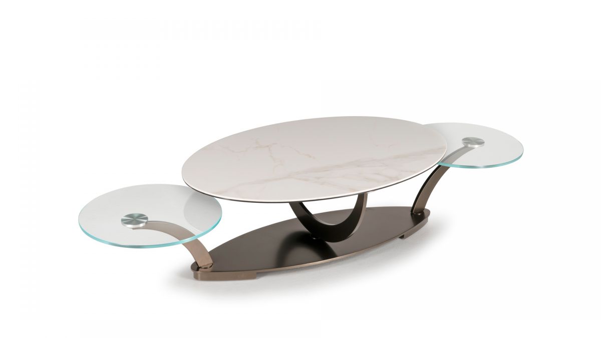 Designerski włoski stolik kawowy COCOON OVAL - stolik o ciekawym designie; podstawa metalowa; blaty szkło lub ceramiczne. Unikalny mechanizm rozkładający.