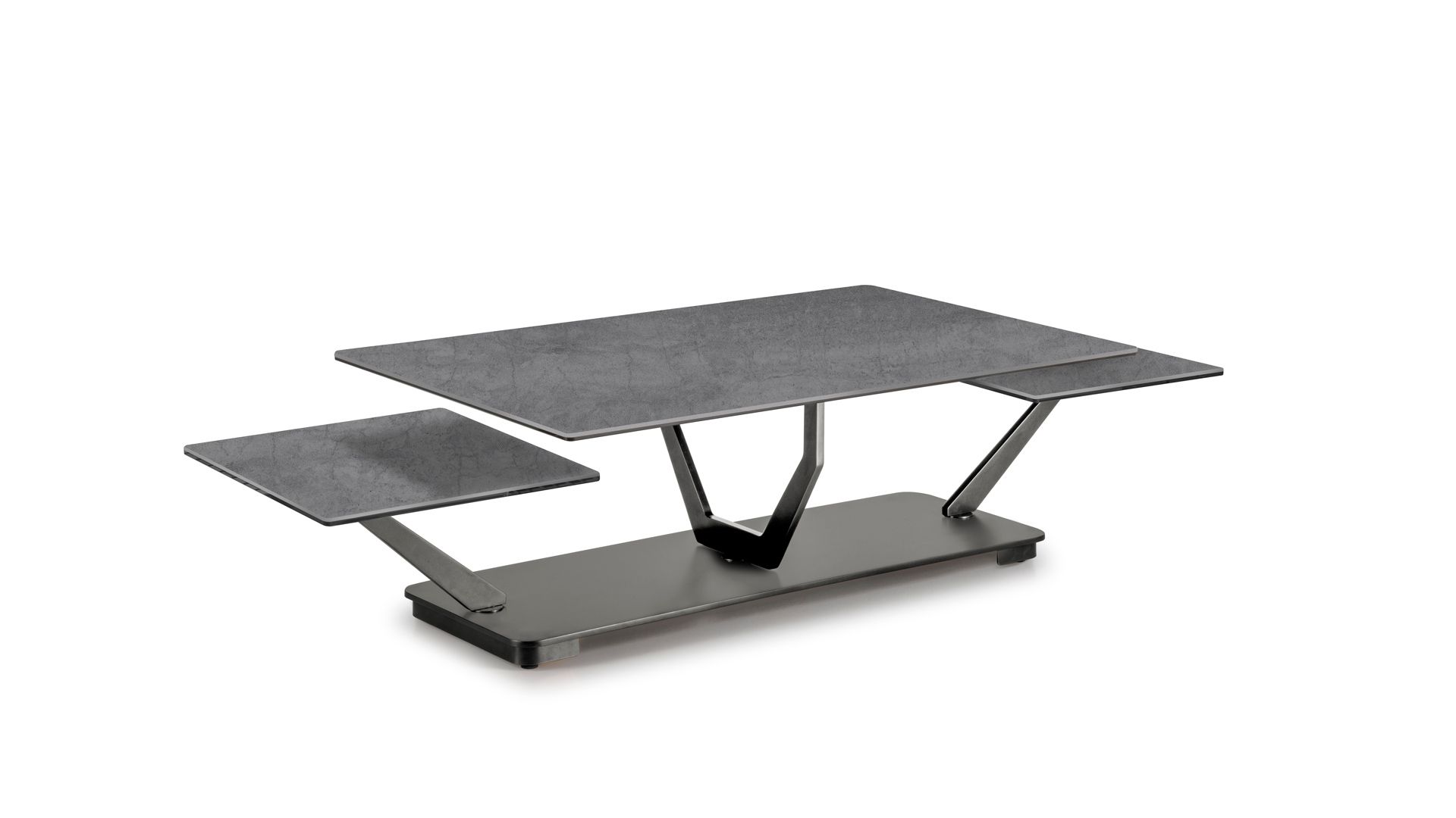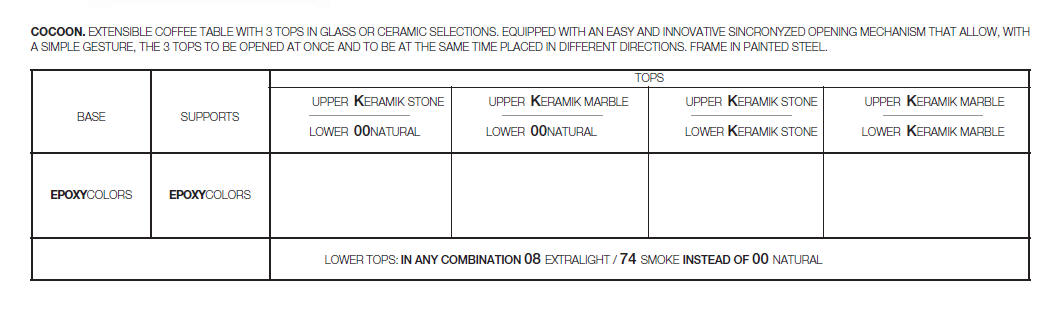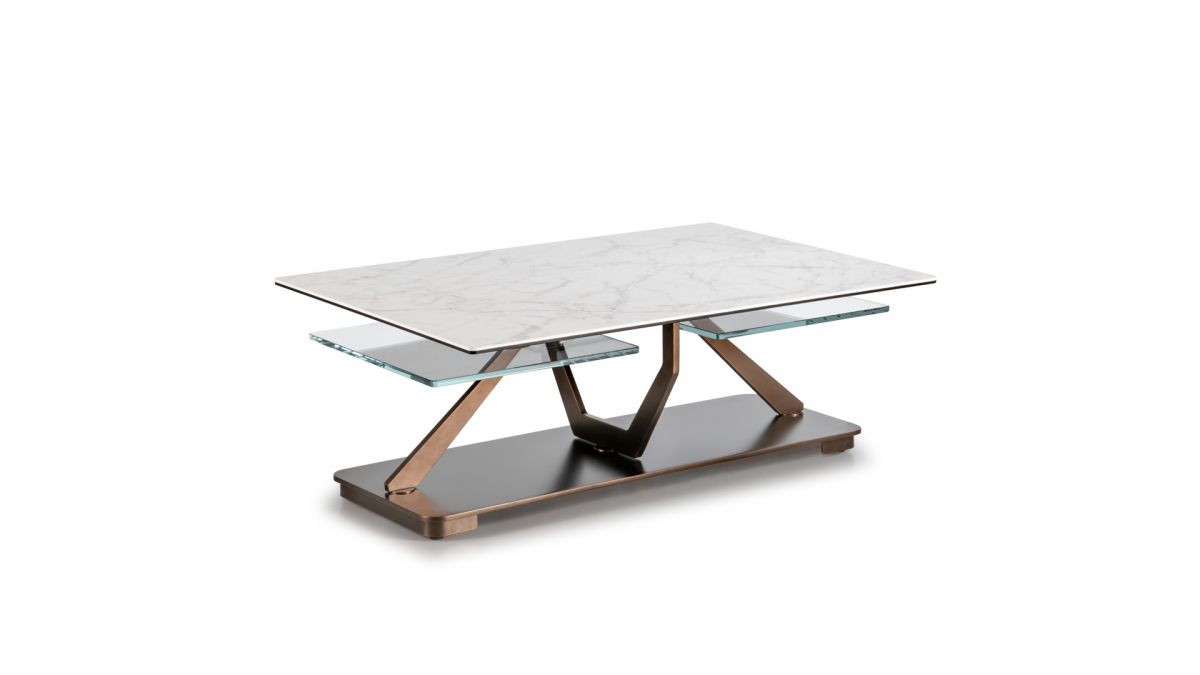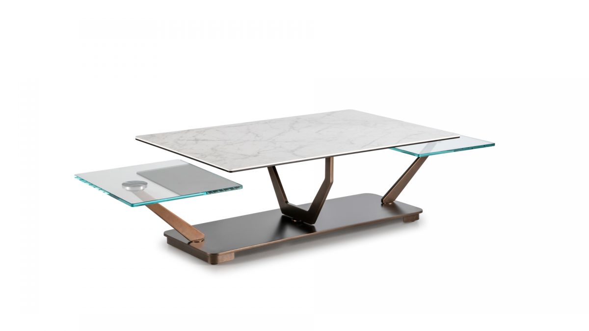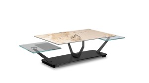 Designerski włoski stolik kawowy COCOON RECT - stolik o ciekawym designie; podstawa metalowa; blaty szkło lub ceramiczne. Unikalny mechanizm rozkładający.