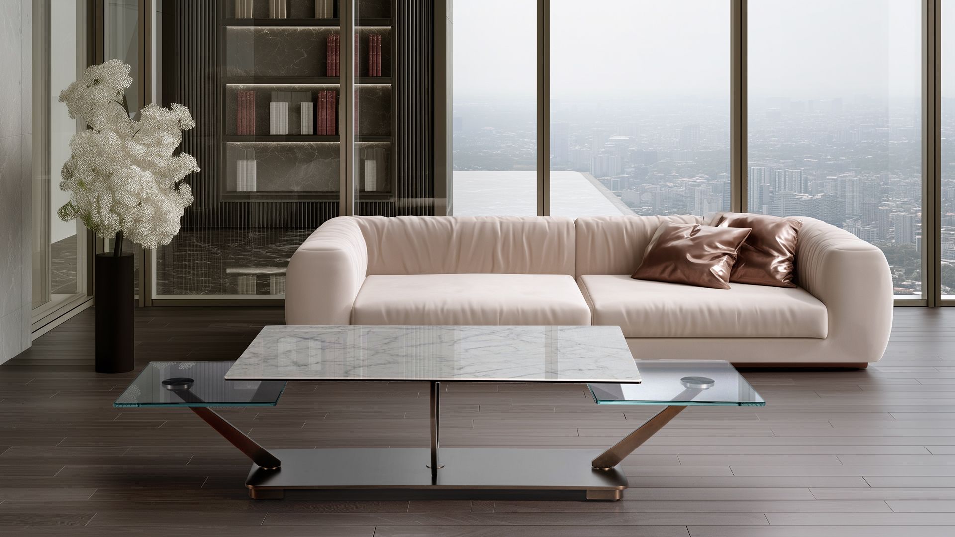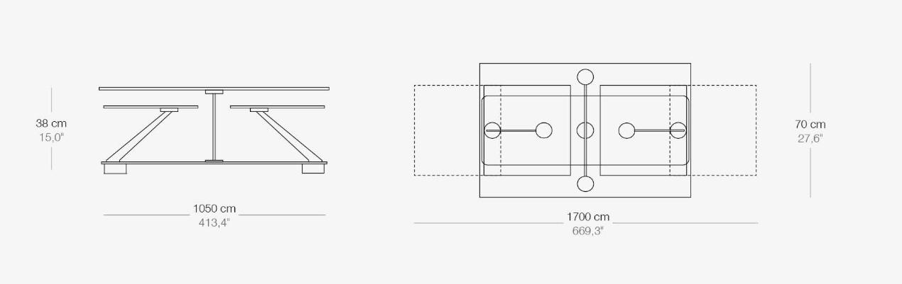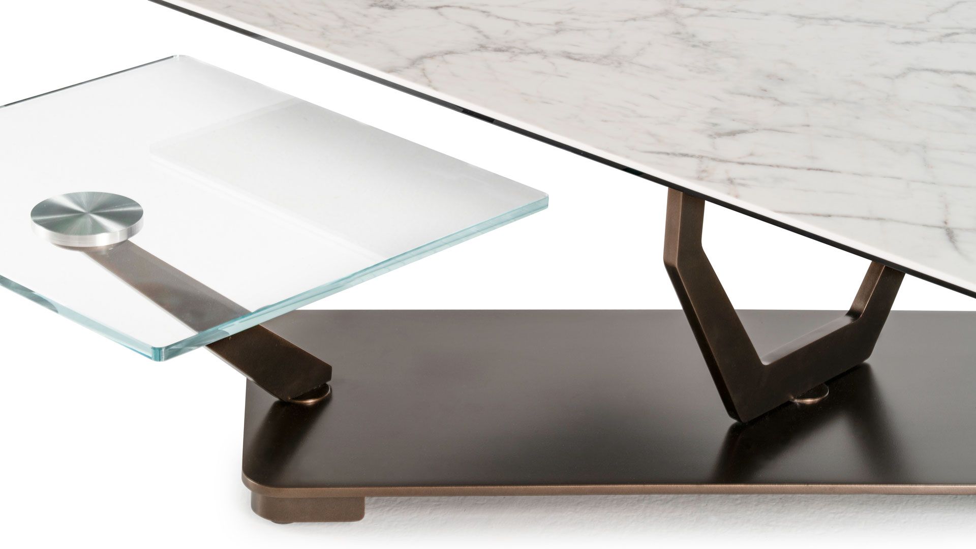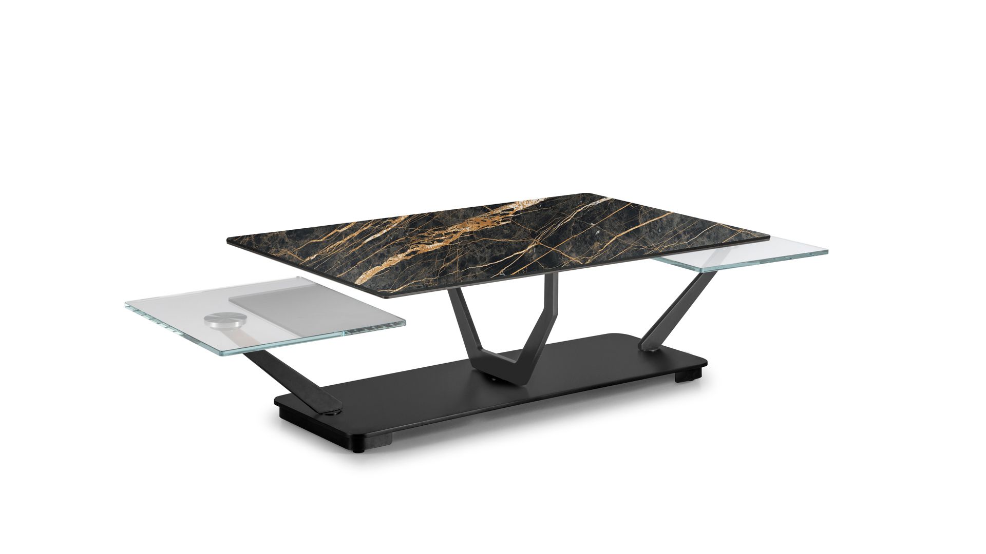 Designerski włoski stolik kawowy COCOON RECT - stolik o ciekawym designie; podstawa metalowa; blaty szkło lub ceramiczne. Unikalny mechanizm rozkładający.