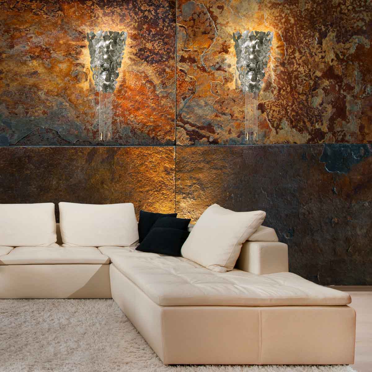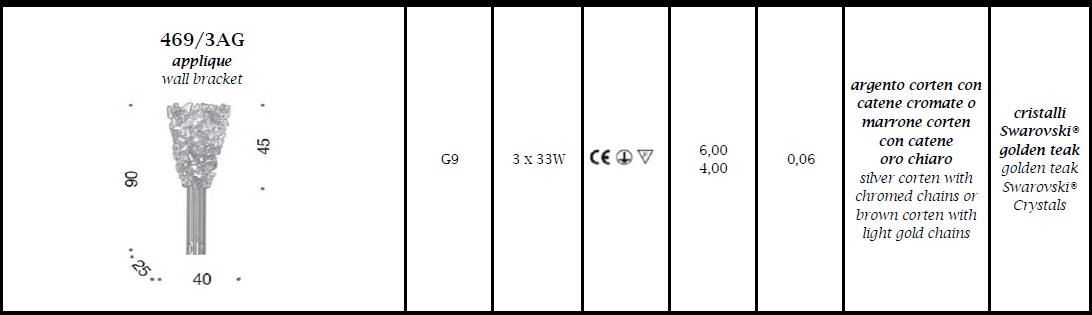 Kinkiet CORTEN 469/3AG - lampa metalowa w dostępna w dwóch kolorach, ozdobne blaszki z cortenu stanowią niezwykle efektowną dekorację; dla ceniących niebanalny design; specyfikacja produktu poniżej; oryginalny produkt włoski.