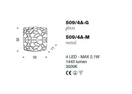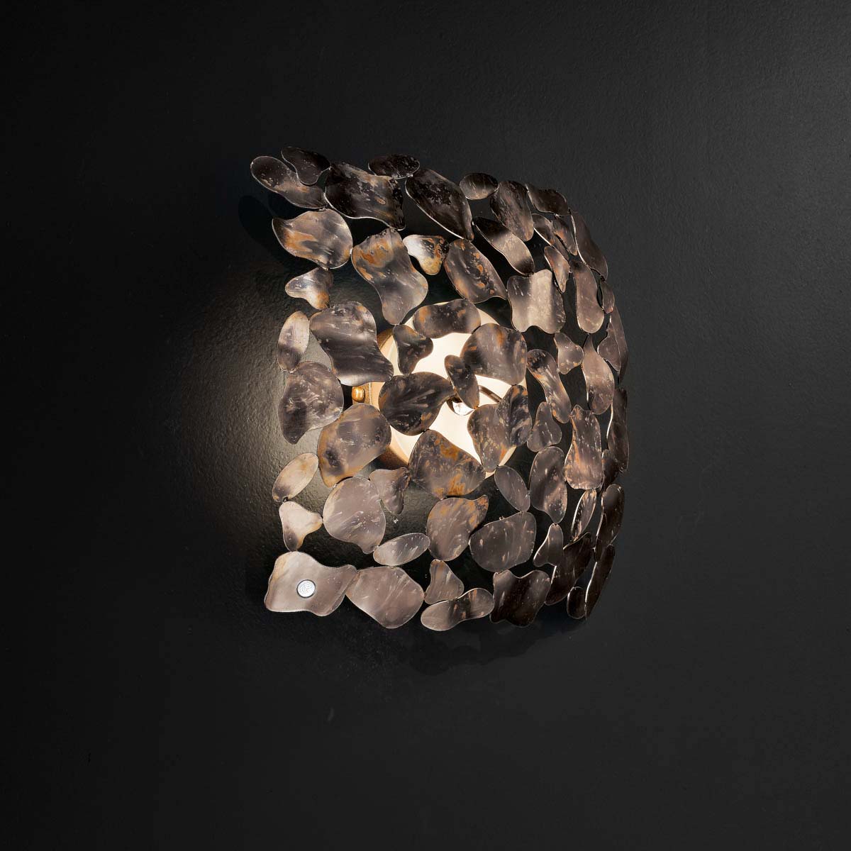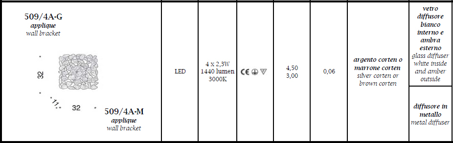 Kinkiet CORTEN 509/4A-G, 509/4A-M - lampa metalowa w dostępna w dwóch kolorach, ozdobne blaszki z cortenu stanowią niezwykle efektowną dekorację; dla ceniących niebanalny design; specyfikacja produktu poniżej; oryginalny produkt włoski.