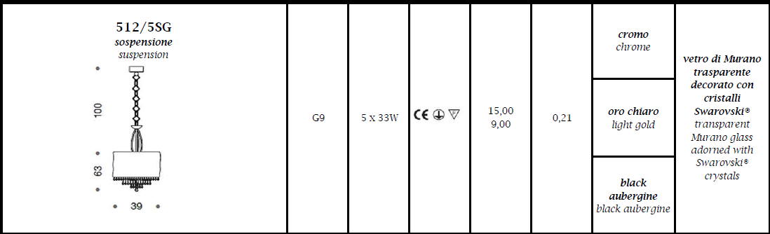 Lampa CRYSTAL BLADE 512/5SG - wisząca, dekoracyjna lampa; efektowna i niepowtarzalna dostępna w kilku wariantach kolorystycznych; specyfikacja produktu poniżej; oryginalny produkt włoski.