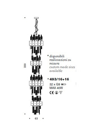 Lampa wisząca - żyrandol CRYSTALLINE 493/16+16 - Oryginał IDL Italia Style