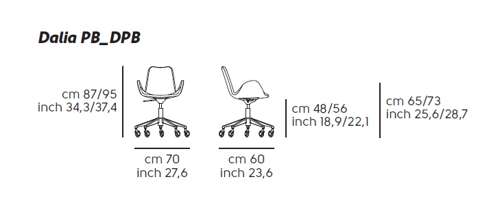 Nowoczesne włoskie krzesła biurowe DALIA PB_DPB_TS - marki MIDJ. Doskonałe do użytku prywatnego jak i do firmy. Krzesło z metalową podstawą, siedzisko tapicerowane w szerokiej gamie tkanin obiciowych, ekoskór i skór naturalnych. Krzesło posiada regulację wysokości.