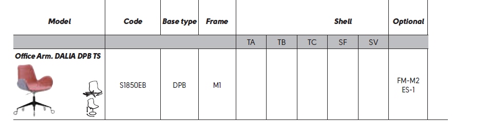 - DALIA PB_DPB_TS; cena od 3 570 zł brutto (dotyczy wariantu: podstawa kategoria M1; siedzisko tapicerowane tkaninami i ekoskórą w kategorii TA;)