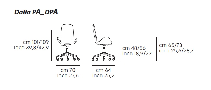 Nowoczesne włoskie krzesła biurowe DALIA PA_DPA_TS - marki MIDJ. Doskonałe do użytku prywatnego jak i do firmy. Krzesło z metalową podstawą, siedzisko tapicerowane w szerokiej gamie tkanin obiciowych, ekoskór i skór naturalnych. Krzesło posiada regulację wysokości.