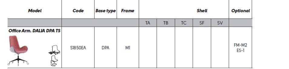 - DALIA PA_DPA_TS; cena od 3 780 zł brutto (dotyczy wariantu: podstawa kategoria M1; siedzisko tapicerowane tkaninami i ekoskórą w kategorii TA;)
