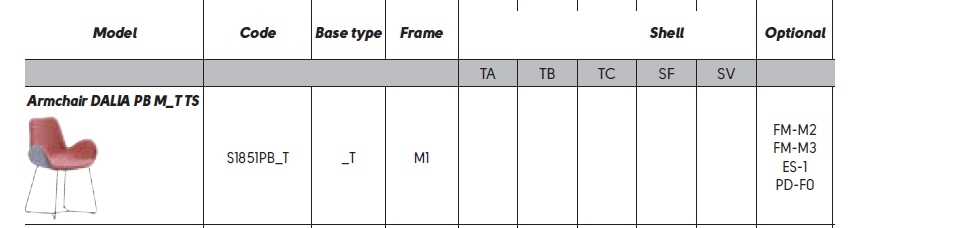 - DALIA PB_M_T_TS; cena od 2 336 zł brutto (dotyczy wariantu: podstawa kategoria M1; siedzisko tapicerowane tkaninami i ekoskórą w kategorii TA;)