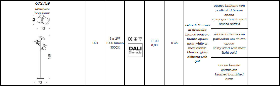 Lampa podłogowa DP 672/5P - linia lamp DP łączy w sobie szkło Murano ze światłem LED. Kolekcja jest dostępna w następujących kombinacjach kolorystycznych: