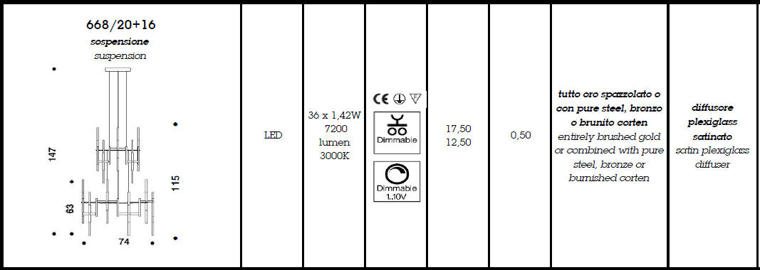 Lampa wisząca EKLE 668/20+16 - Kolekcja Ekle łączący wszechstronność i innowacyjność, tworząc eklektyczny styl, który zdobi i wyposaża wyjątkowe i niepowtarzalne wnętrza.