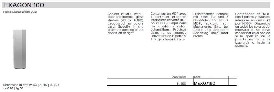 Szafka włoska EXAGON - nowoczesna szafka wykonana z lakierowanego MDF-u w szerokiej gamie kolorystycznej. Dostępne dwie wysokości szafki.