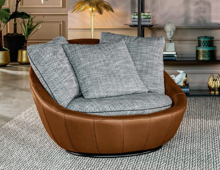 Fotel olbrzymi DOPPIO SOGNO - podstawa obrotowa; super wygodny fotel o nowoczesnym designie, tapicerowane tkaniną, ekoskórą lub skórą naturalną - duży wybór kolorów tkanin obiciowych; ciekawa forma, eleganckie meble, staranne wykonanie i dbałość o detale.