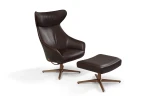 Fotel GNOSTIC; fotel na obrotowej podstawie; fotel z wysokim oparciem i wygodnymi podłokietnikami; można również zamówić podnóżek; fotel dostępny w szerokiej gamie tkanin i skór naturalnych.