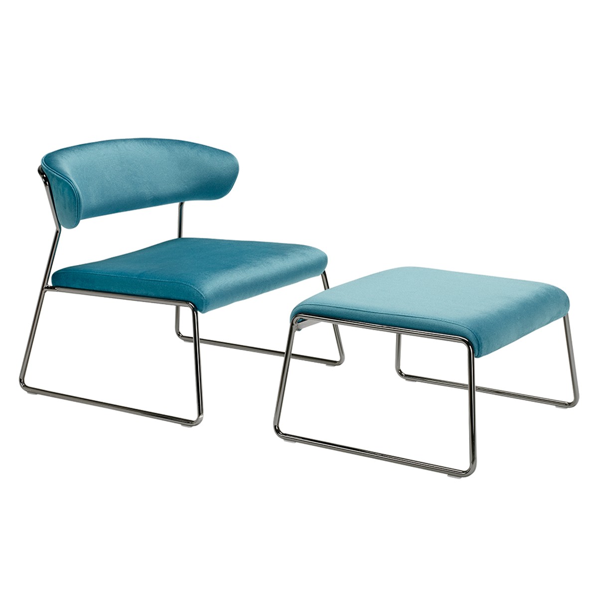 Fotel LISA; siedzisko i oparcie tapicerowane w wielu kolorach, rama metalowa w czterech kolorach. Fotel przeznaczony do użytku wewnątrz pomieszczeń. Można również zamówić podnóżek i stolik kawowy.