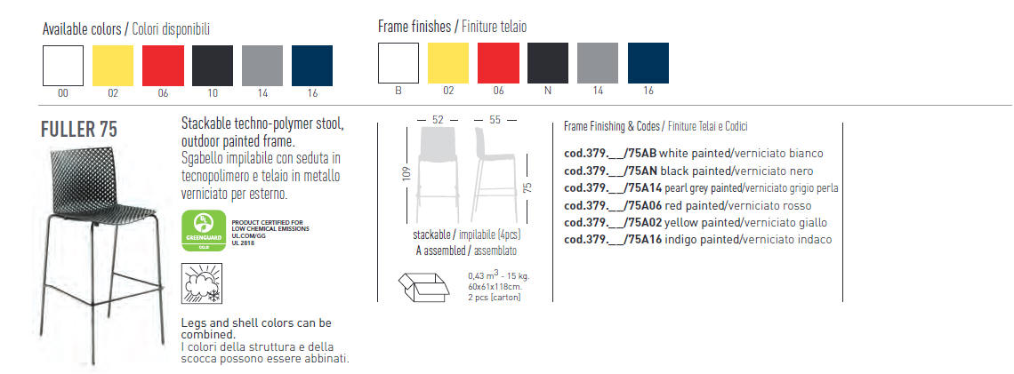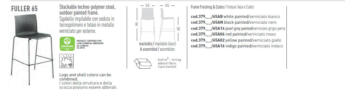 Hoker FULLER - siedzisko krzesła z techo-polymeru; podstawa z lakierowanego metalu; dostępne dwie wysokości hokerów; hokery można sztaplować; Hokery można użytkować również na zewnątrz. Doskonała propozycja do ogródków kawiarnianych.