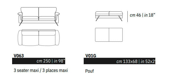 Fotel, sofy wypoczynkowe, pufa, zestawy z systemu GINEVRA (I911); w systemie dostępne są sofy w kilku rozmiarach, fotel i pufa. Meble dostępne są w wielu tkaninach obiciowych i skórach naturalnych.