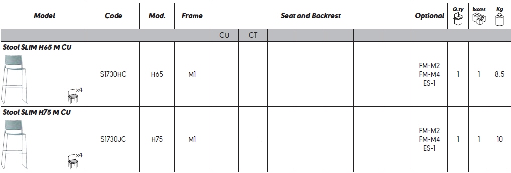Hokery SLIM M_CU H65 H75 - szeroka gama kolorystyczna - produkt MIDJ.
