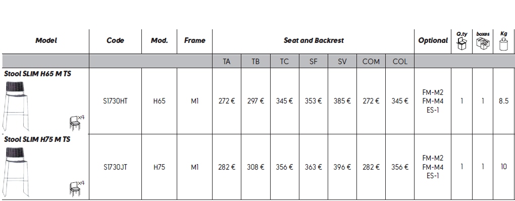 - SLIM M_TS H65 cena od 1 976 zł brutto (dotyczy wariantu: podstawa kategoria M1; siedzisko tapicerowane tkaninami z kategorii TA)