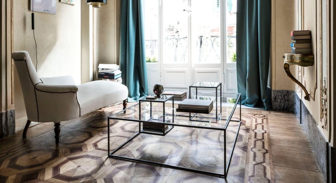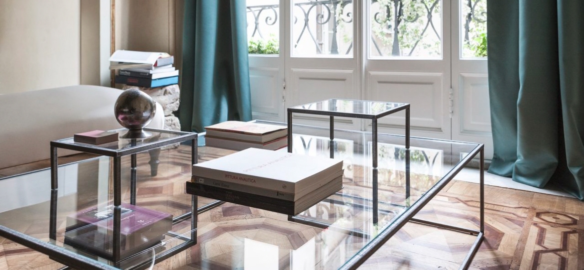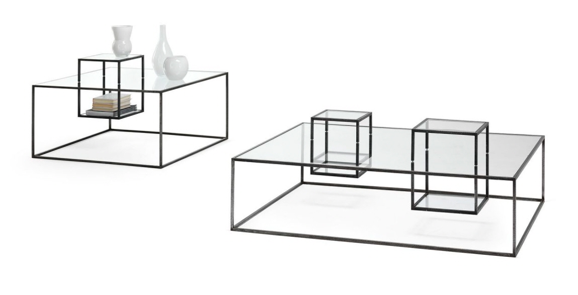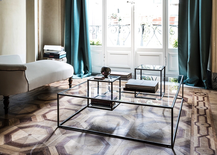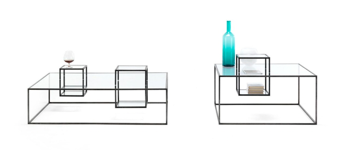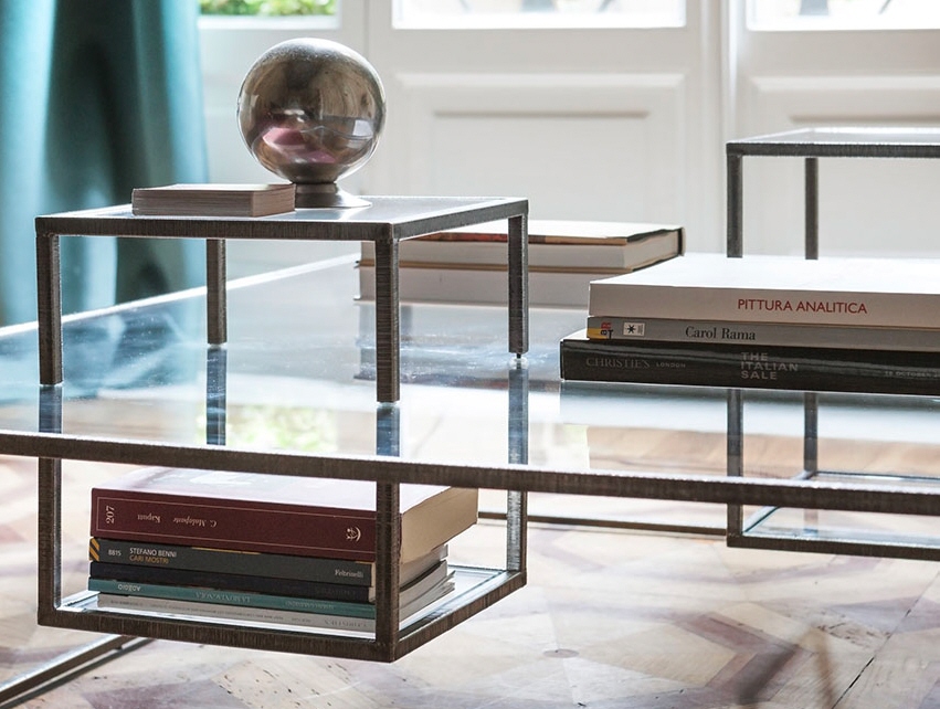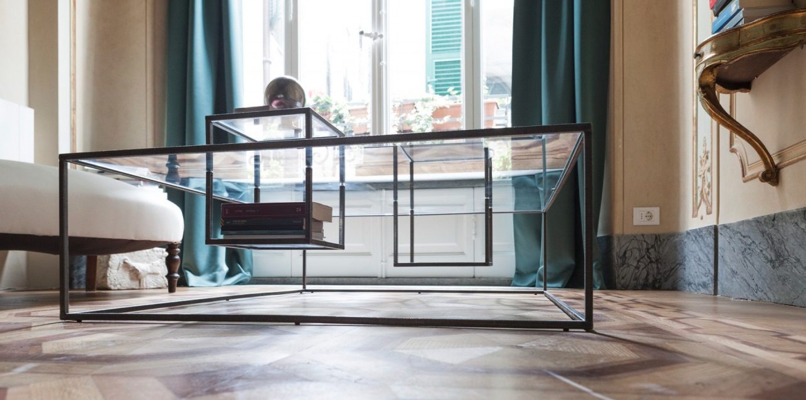 Stolik włoski, kawowy ILLUSIONI - stolik o wyjątkowym designie; połączenie metalowej konstrukcji ze szklanym blatem; stolik wyposażony zależnie od modelu w jedną lub dwie sprytne półki.