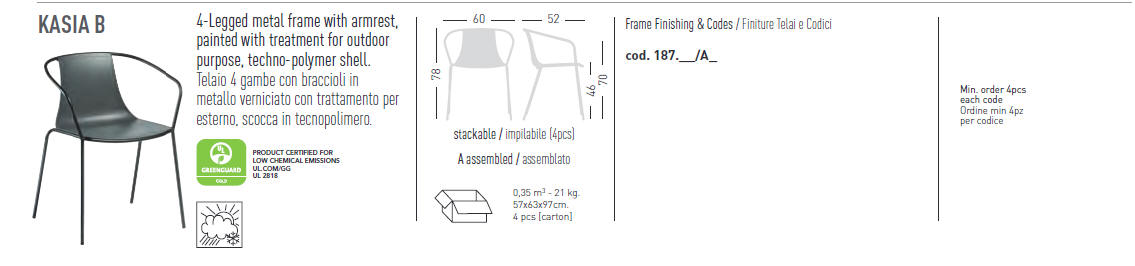 Krzesło KASIA - krzesło o metalowej ramie z siedziskiem z techno-polymeru; dostępna również wersja z tapicerowanym siedziskiem. Krzesła z siedziskiem z techno-polymeru można sztaplować.