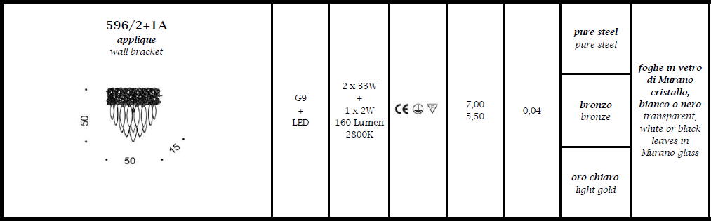 Kinkiet ELITE 596/2+1A - efektowna seria lamp, doskonała do wnętrz w stylu galmour; metalowe elementy w trzech kolorach i dekoracje ze szkła Murano w trzech kolorach; specyfikacja produktu poniżej; oryginalny produkt włoski.