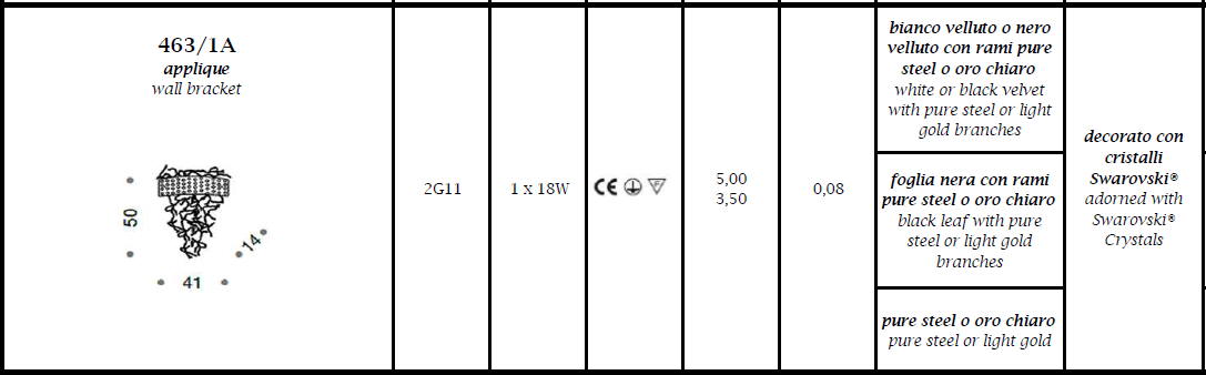 Kinkiet GROOVY 463/1A - wiszący, dekoracyjny plafon; efektowny i niepowtarzalny dostępny w kilku wariantach kolorystycznych; specyfikacja produktu poniżej; oryginalny produkt włoski.