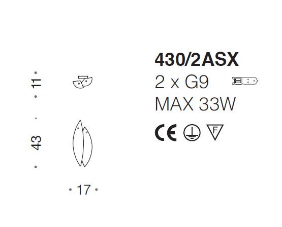 Kinkiet PARADISE 430/2ASX - dekoracyjna lampa; klosze szklane; efektowna i niepowtarzalna dostępna w kilku wariantach kolorystycznych; specyfikacja produktu poniżej; oryginalny produkt włoski.