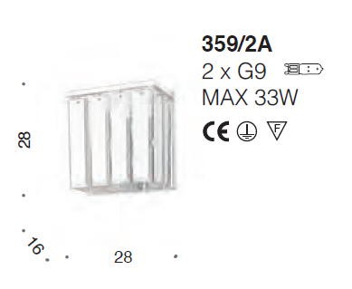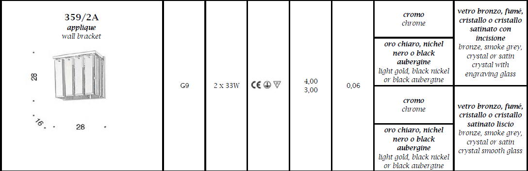 Kinkiet ROMA 359/2A - dekoracyjna lampa; efektowna i niepowtarzalna dostępna w kilku wariantach kolorystycznych; metalowa rama połączona ze szkłem dyfuzorowym z grawerunkiem lub bez; specyfikacja produktu poniżej; oryginalny produkt włoski.