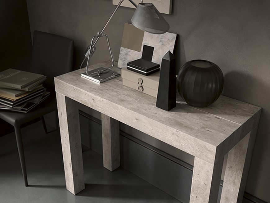 Nowoczesna włoska konsola, rozkładana do wielkości stołu COMBI - konsola rozkładana do wielkości stołu, zakres rozkładania od 40 do 190 cm lub od 40 do 290 cm; 3 lub 5 wkładek powiększających; centralne nogi wspierające lub za dopłatą wkładka przedłużająca Extenso; blat i podstawa: Melamine.