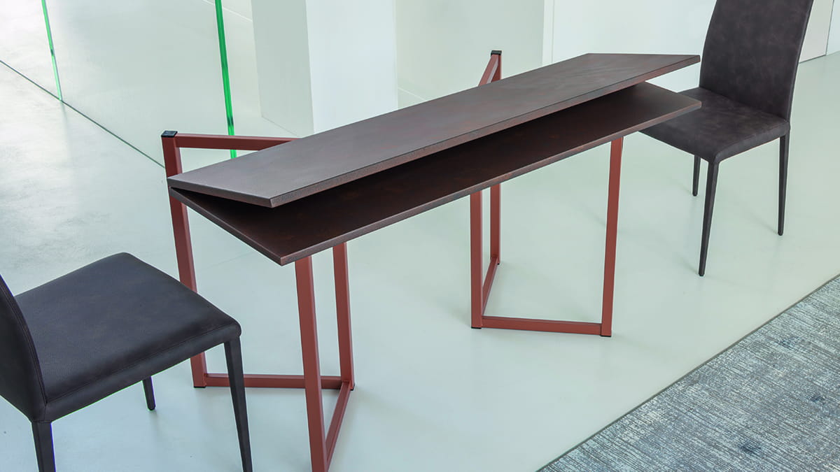 Nowoczesna włoska konsola, rozkładana do wielkości stołu FLAP - konsola rozkładana do wielkości stołu; blat: Melamine, Mortar-look.