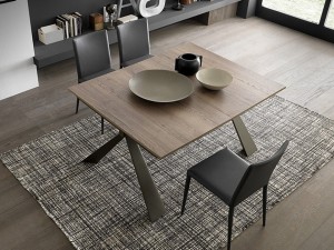 Nowoczesna włoska konsola, rozkładana do wielkości stołu GENESI - konsola rozkładana do wielkości stołu, zakres rozkładania od 45 do 195 cm lub od 45 do 295 cm; 3 lub 5 wkładek powiększających; centralne nogi wspierające; podstawa metalowa; blat: melamine, Open pore lacque, Oak veneer, Mortar-look, ceramic 3mm, ceramic 5mm;