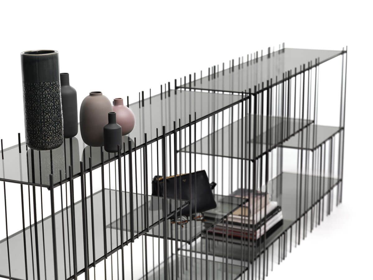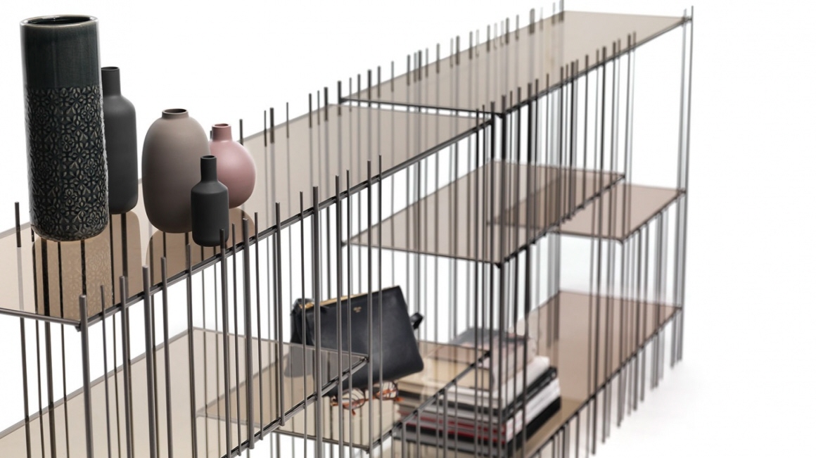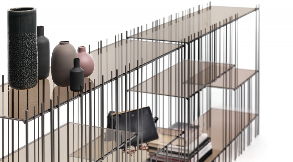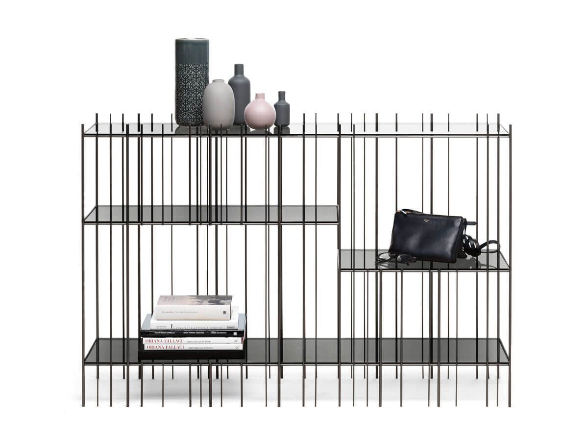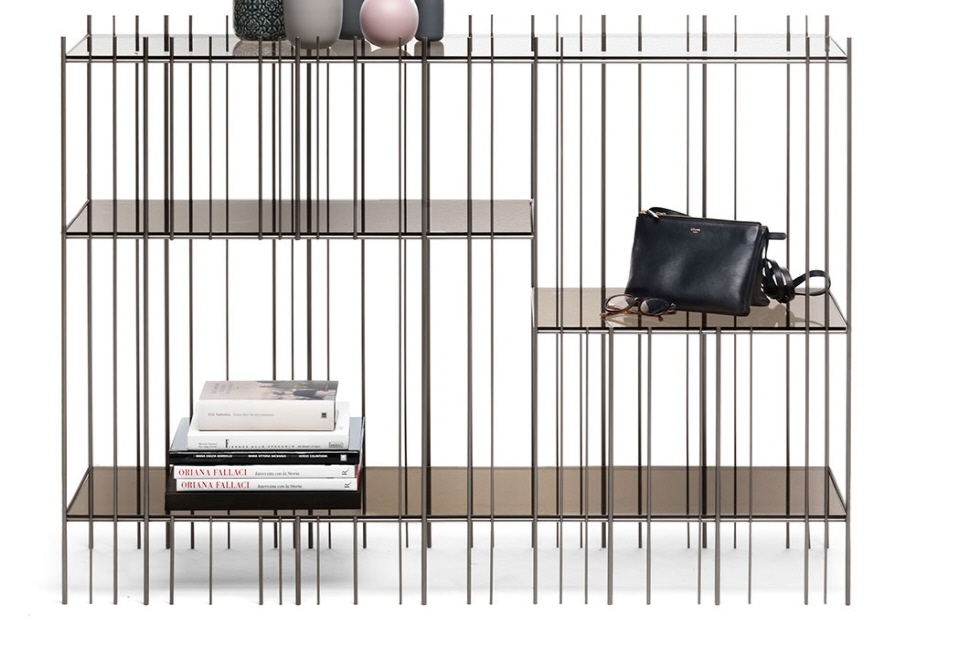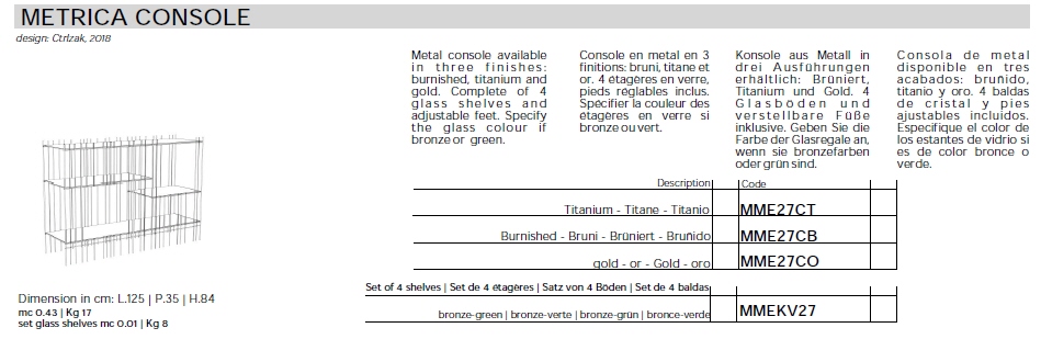 Konsola włoska METRICA - konsola o ciekawej konstrukcji; konstrukcja metalowa dostępna w trzech kolorach; konsola wyposażona w cztery szklane półki.