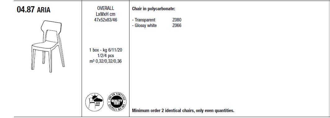 Krzesło ARIA OUTDOOR - krzesło z polycarbonatu; krzesło przeznaczone do użytku zewnętrznego. Polecane do ogrodu i na taras. Doskonałe również do jadalni i kuchni. Polecane do użytku komercyjnego do kawiarni czy restauracji.