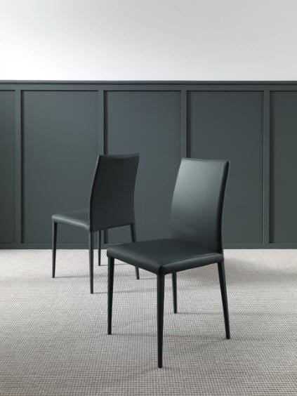 Włoskie krzesła DANDY - krzesła o prostej, klasycznej linii; podstawa metalowa, tapicerowana; krzesło tapicerowane eco skórą lub eco nabuuk.