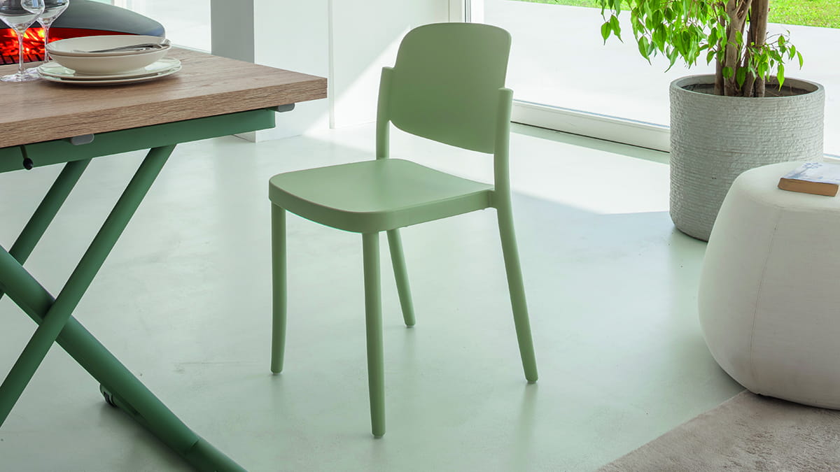 Włoskie krzesła DORY - krzesła wykonane z polipropylenu; krzesła można sztaplować (do 10 sztuk); można je używać również na zewnątrz;