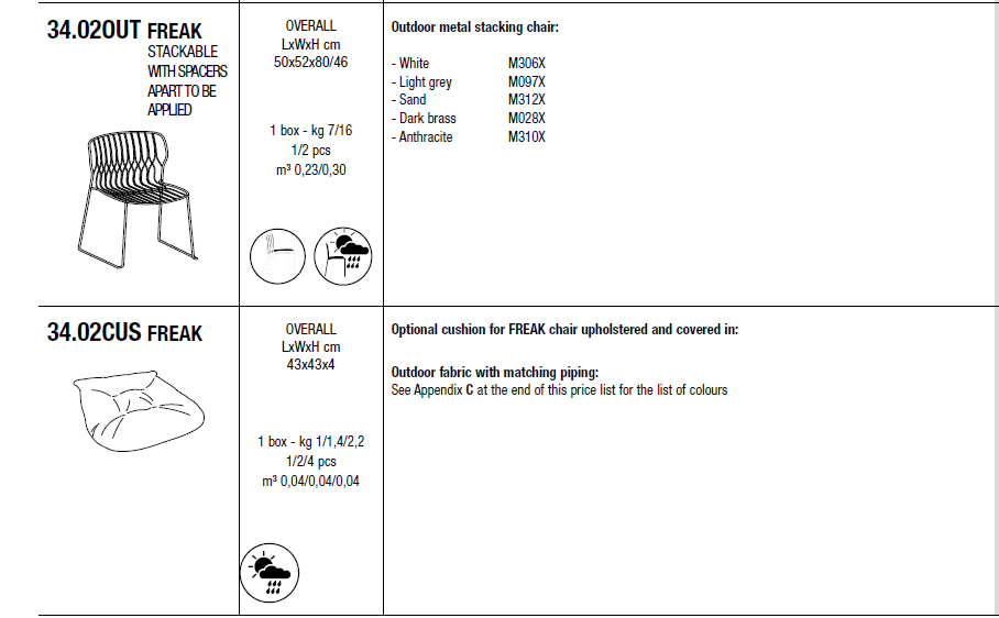 Nowoczesne krzesła włoskie FREAK OUTDOOR - krzesła metalowe lakierowane dostępne w kilku kolorach. Krzesło można sztaplować. Za dopłatą krzesło można wyposażyć w poduszkę.